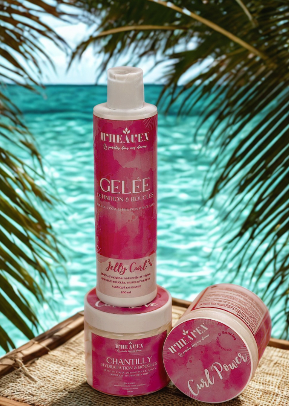 Le kit bouclettes composé d'un sans rinçage, d'une chantilly et d'une gelée bouclante conçu spécialement pour former les boucles et retenir un maximum d'hydratation afin que vos boucles respectent dans le temps.